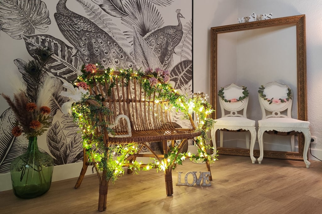 Crea la boda de tus sueños con nuestra decoración. Flores, luces, mobiliario y detalles únicos. Hacemos que cada rincón cuente una historia de amor.