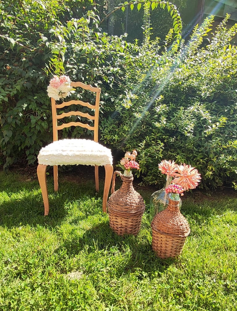 Sillas con encanto antiguas, restauradas y tapizadas con tela de brocado.